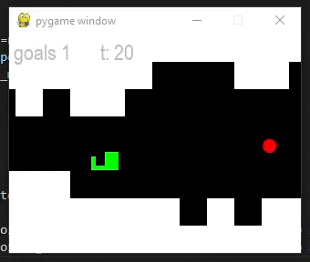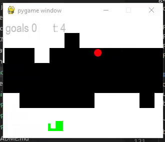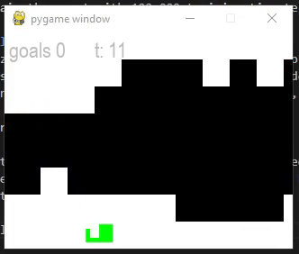 Now it was time to introduce the Goal and I trained it again with DQN increasing the training timesteps to 175,000 as I found it performed better while experimenting without goals. To be honest I felt like it was making an effort to collect the goals however it wasn’t quite getting there [Fig. 1]. So I went about increasing the training steps to 250,000 witch had a positive effect in terms of collecting goals, however it now starting to fall out-side of the screen bounds and consequently die [Fig.2]. So I thought I would increase the training steps further to 350,000 to see if it made any improvement, to which it collected pretty much ever goal and to my surprise it was slightly more stable [fig. 3.1]. I mean it was still unstable but it was staying more within the screen bounds and better lining up with goals [Fig. 3.2].